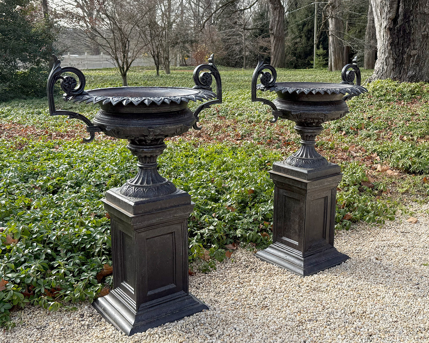 06622 Cast Iron Tazza Form Urns on Pedestals